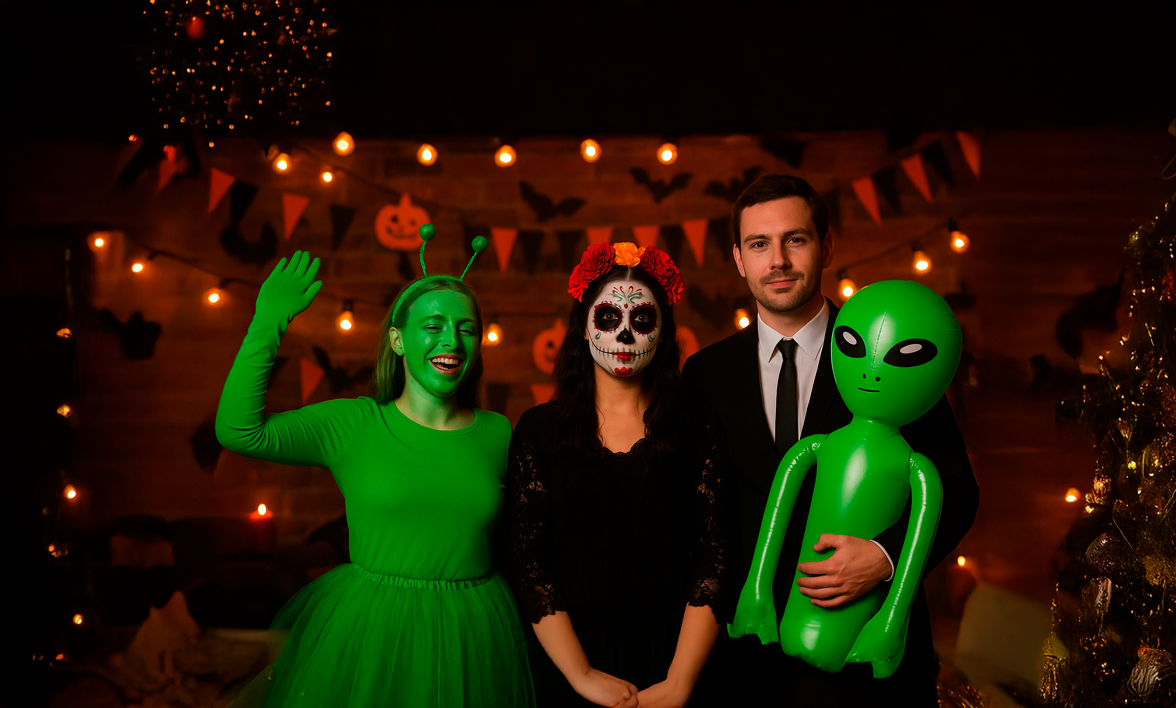 - Men in Black: viste con pantalón y chaqueta negros, camisa blanca y gafas de sol. El detalle divertido lo pone un alien hinchable que puedes llevar como compañero. Para el maquillaje basta con una base natural, aunque puedes marcar un poco las ojeras para dar un aire más serio.