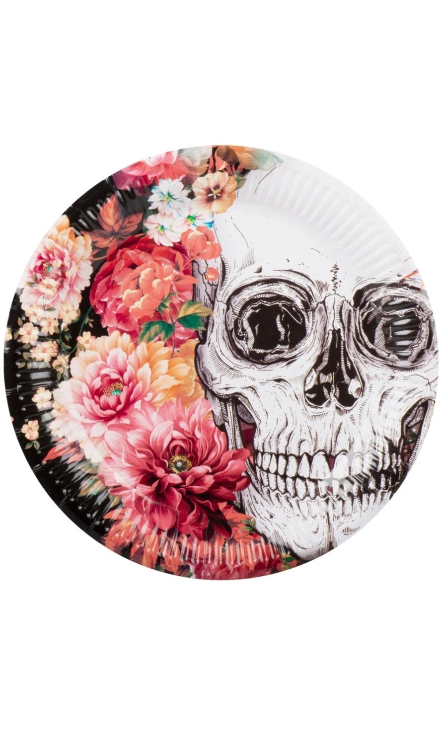 Assiettes Dia de Los Muertos Fleurs pour Halloween. Recréez l´ambiance d´une nuit d´horreur avec vos amis ou en famille grâce à ces accessoires à thème Halloween. Vivants et morts seront invités: des sorcière et des magiciens, des zombis et des squelettes ainsi que des élégants vampires ou être de l´inframonde. Il viendront de l´enfers ou des limbes, des âmes en peine qui vagabonderont pendant toute une nuit de terreur.