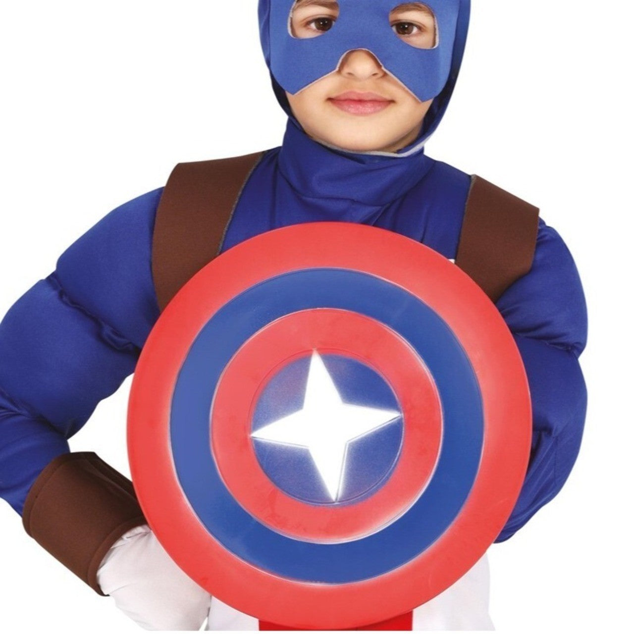 Bouclier Captain Star enfant pour réussir le carnaval et les soirées costumées. Nous rêvons tous d'être des super-héros le temps d'un jour, avec nos accessoires et costumes, vous pouvez choisir quel super pouvoir vous préférez. Pour vos fêtes de carnaval, achetez des costumes et accessoires de super-héros dans notre boutique en ligne.