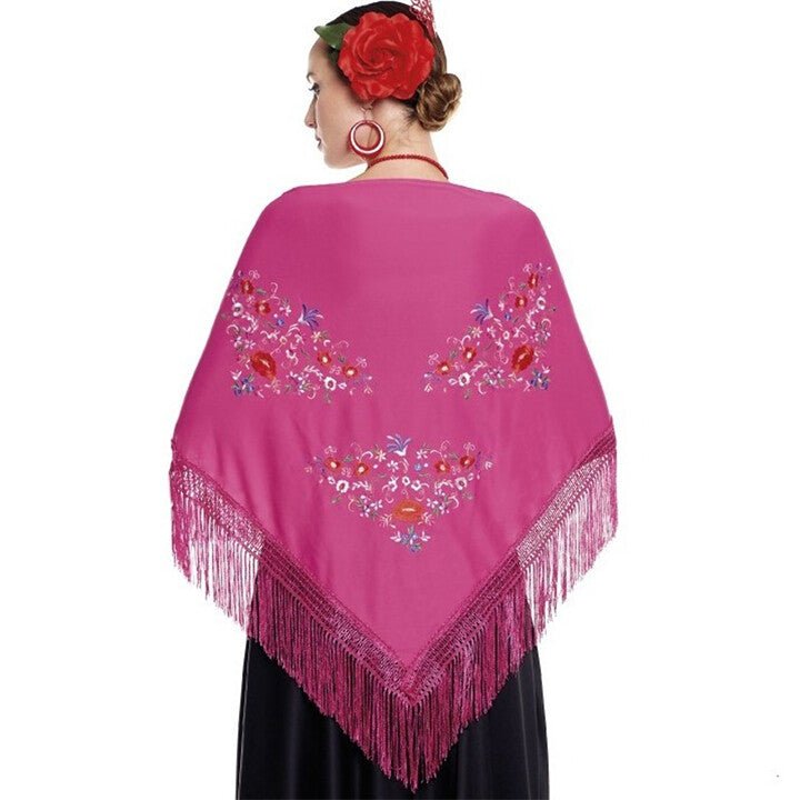 Châle Fuchsia Brodé pour le carnaval et la Feria d'Avril. Achetez des accessoires pour les costumes de sevillana et dansez sans cesse lors de vos soirées flamenco. Découvrez notre catalogue d'accessoires pour compléter votre costume et devenir une véritable danseuse de flamenco.