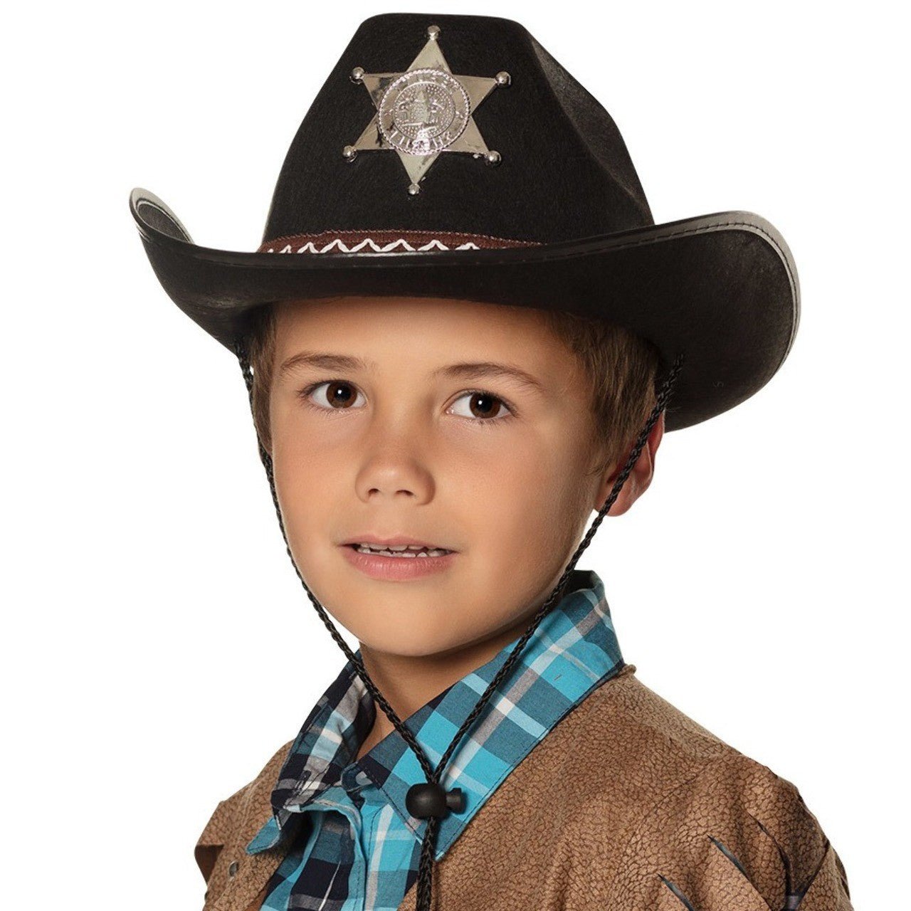Chapeau de Cowboy Shérif Noir pour enfants pour Carnaval et soirée déguisée. Accessoires pour déguisements d'indiens et de cow-boys pour voyager dans le vieil ouest. Choisissez les accessoires les plus originaux et idéaux pour votre fête. Achat sécurisé. Satisfait ou remboursé.
