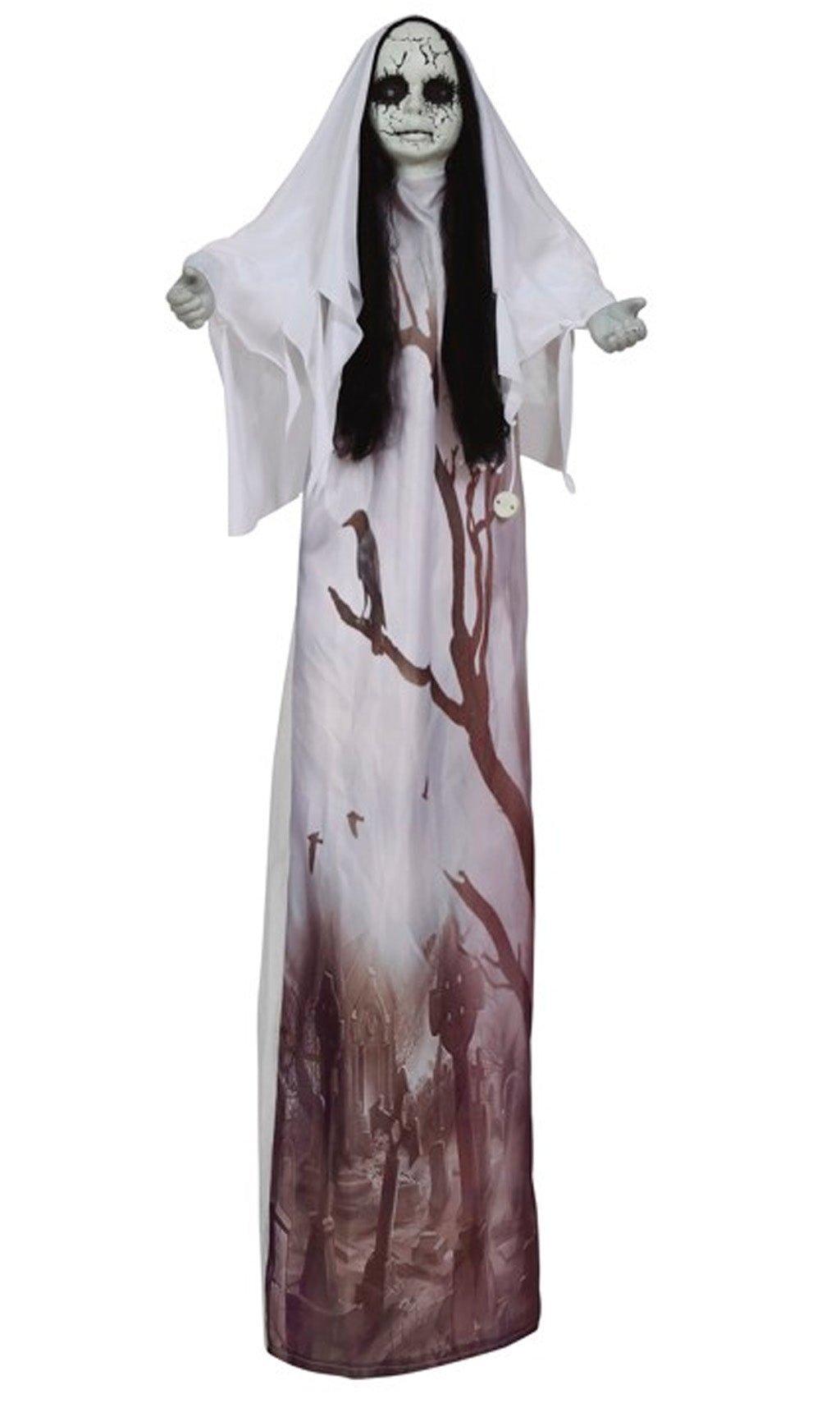 Décoration à Suspendre de Femme Fantôme pour Halloween. Recréez l´ambiance d´une nuit d´horreur avec vos amis ou en famille grâce à ces accessoires à thème Halloween. Vivants et morts seront invités: des sorcière et des magiciens, des zombis et des squelettes ainsi que des élégants vampires ou être de l´inframonde. Il viendront de l´enfers ou des limbes, des âmes en peine qui vagabonderont pendant toute une nuit de terreur.