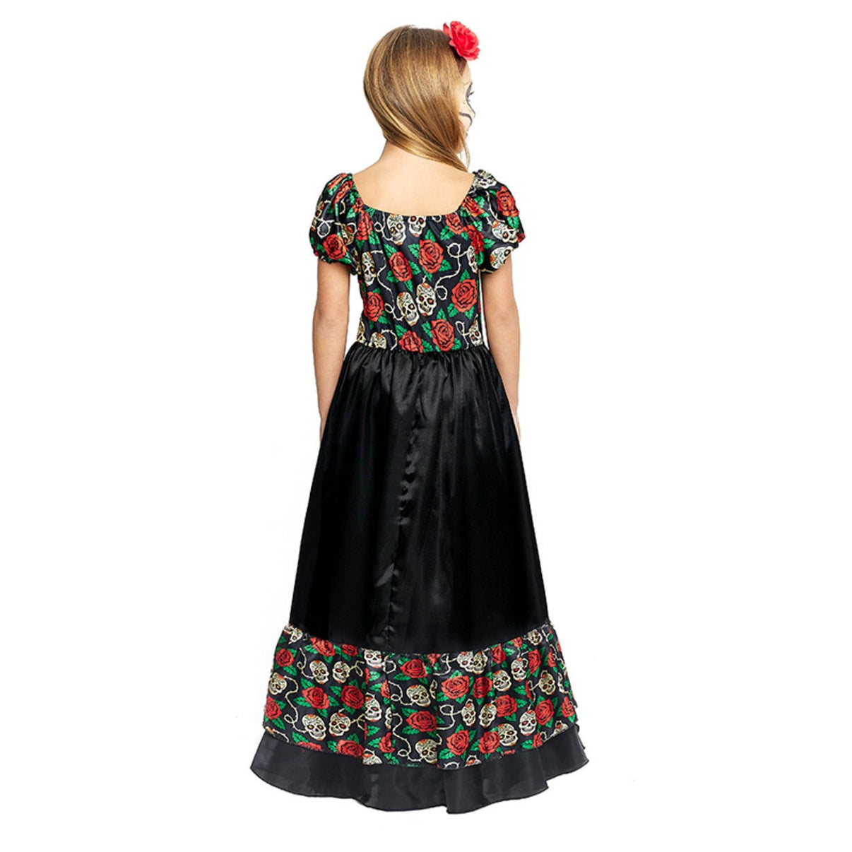Déguisement Catrina Mexicaine Roses pour fille pour Halloween et les fêtes effrayantes. Costumes des personnages les plus terrifiants : catrina, la mort, le fantôme, etc... Fêtez à fond le jour des morts-vivants.