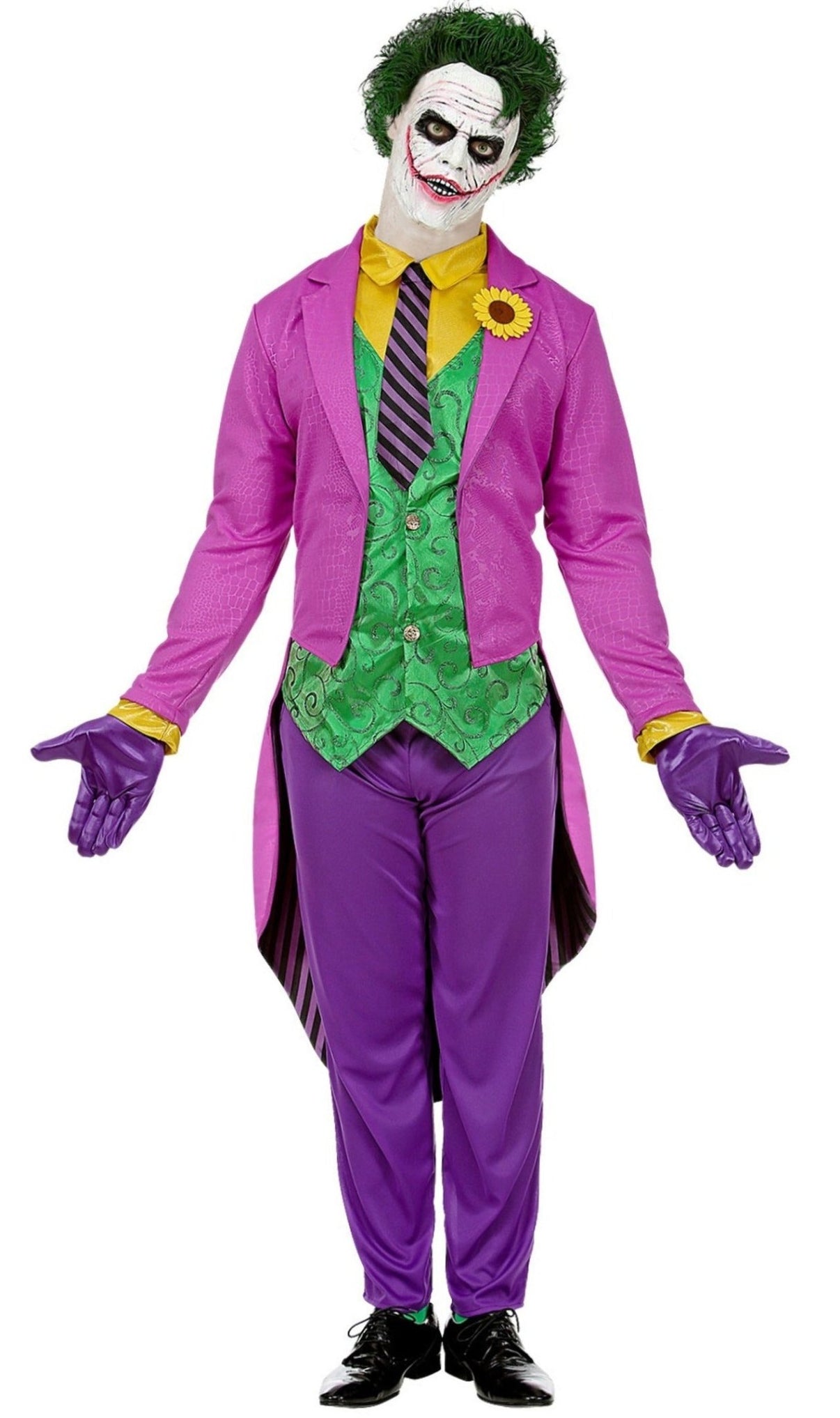 Déguisement XL de Joker Fou pour homme pour Halloween. Recréez l´ambiance d´une nuit d´horreur avec vos amis ou en famille grâce à ces costumes à thème Halloween. Vivants et morts seront invités: des sorcière et des magiciens, des zombis et des squelettes ainsi que des élégants vampires ou être de l´inframonde. Il viendront de l´enfers ou des limbes, des âmes en peine qui vagabonderont pendant toute une nuit de terreur.