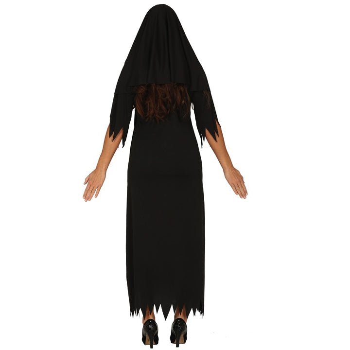 Déguisement de Nonne Sinistre pour femme pour Halloween. Recréez l´ambiance d´une nuit d´horreur avec vos amis ou en famille grâce à ces costumes à thème Halloween. Vivants et morts seront invités: des sorcière et des magiciens, des zombis et des squelettes ainsi que des élégants vampires ou être de l´inframonde. Il viendront de l´enfers ou des limbes, des âmes en peine qui vagabonderont pendant toute une nuit de terreur.