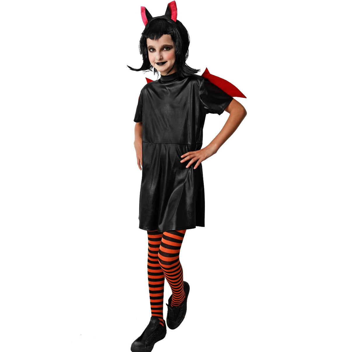 Déguisement de Vampiresse Mavis pour enfant pour Halloween et le Carnaval. Voyagez en Transylvanie et visitez le château de Dracula, où vous vivrez éternellement parmi les cercueils et les ultra-tombes. Pour vos fêtes d'Halloween, choisissez le déguisement de vampire et de vampire, un classique qui triomphe toujours.