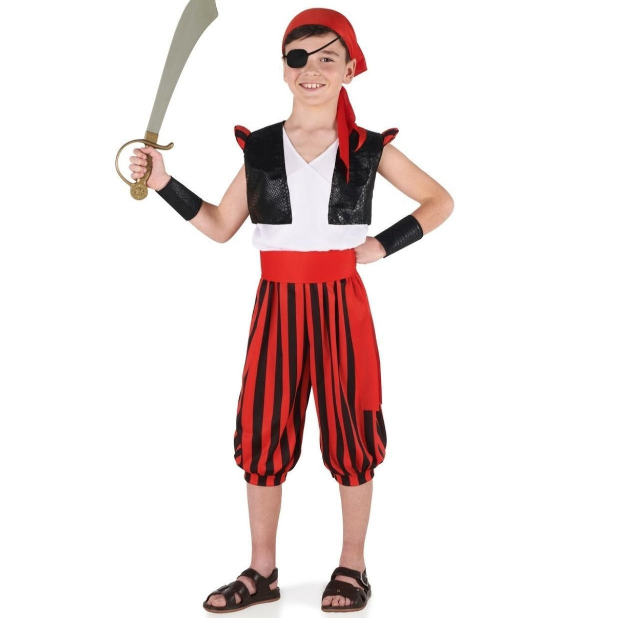 Comprend: Haut, pantalon, bandana, cache-oeil, gilet, bracelets et ceinture. Ne comprend pas d'autres accessoires non mentionnés.