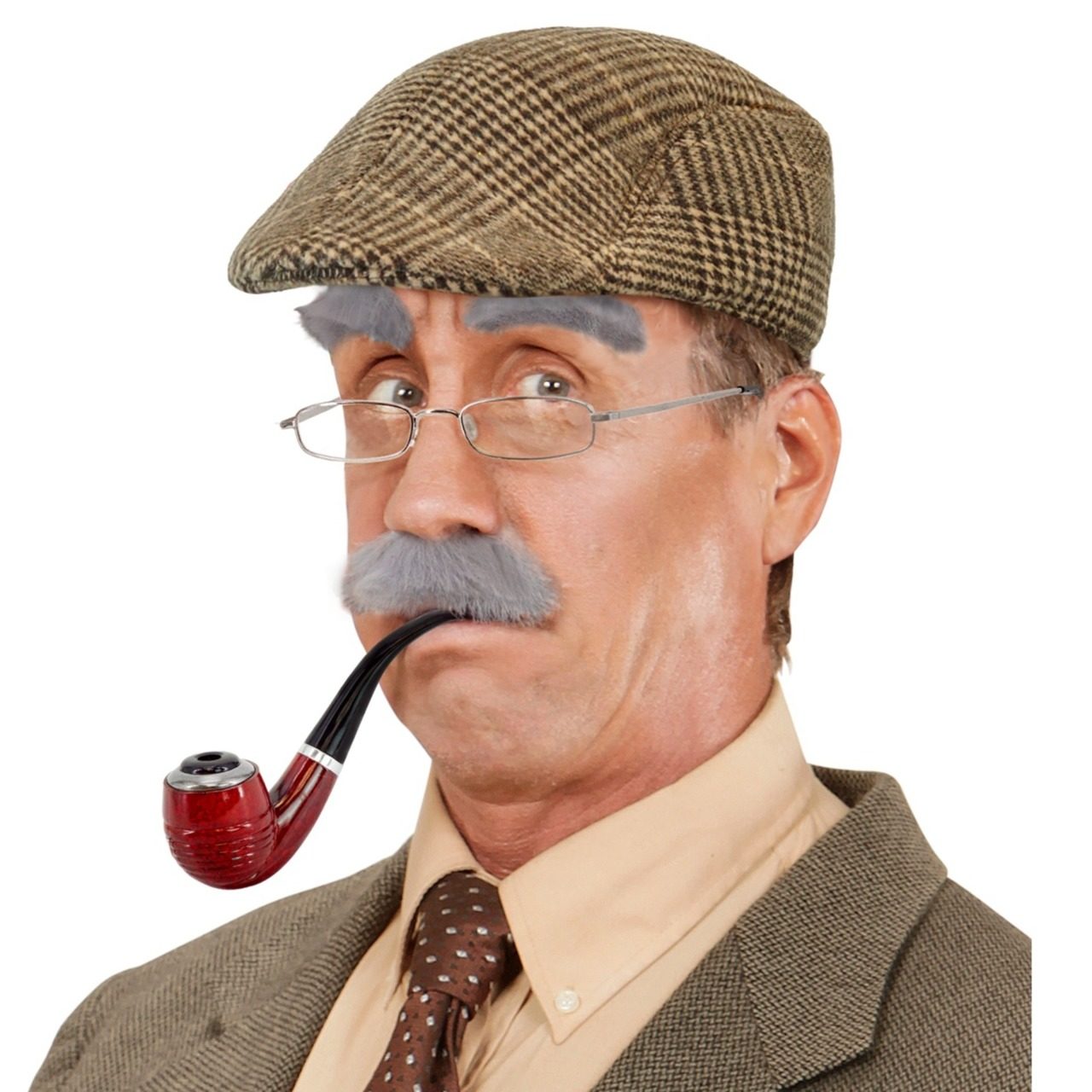 Comporte: Chapeau, sourcils, moustache, lunettes et pipe