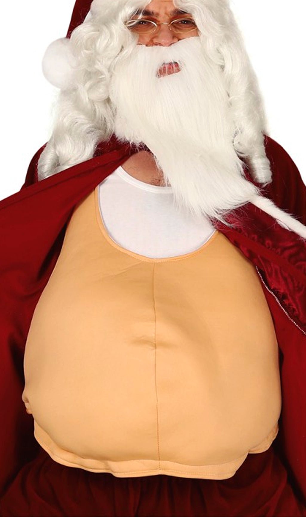 Faux Ventre en Tissu pour Noël. Portez votre accessoire de père Noël ou mère Noël le soir de Noël et offrez les cadeaux fabriqués par les lutins au Pôle Nord. Les rennes, guidés par Rudolphe, vous aideront à voyager de cheminée en cheminée pour déposer les cadeaux sous le sapin de Noël.