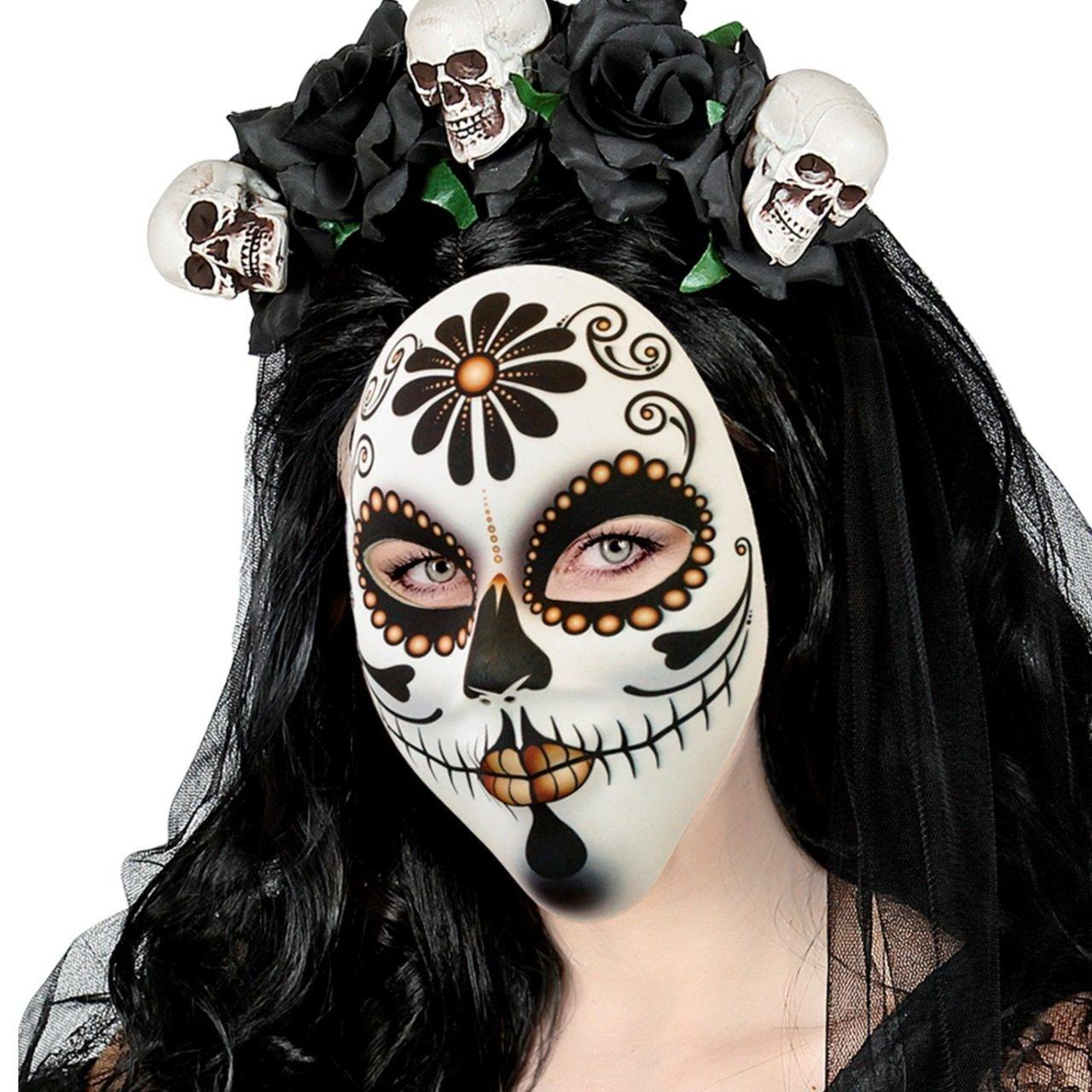 Masque de Catrina Sinistre pour Halloween et fêtes terrifiantes. Tous les accessoires pour te déguiser en personnages les plus effrayants: catrina, mort, fantôme, etc... Célèbre en grand le jour des morts-vivants.
