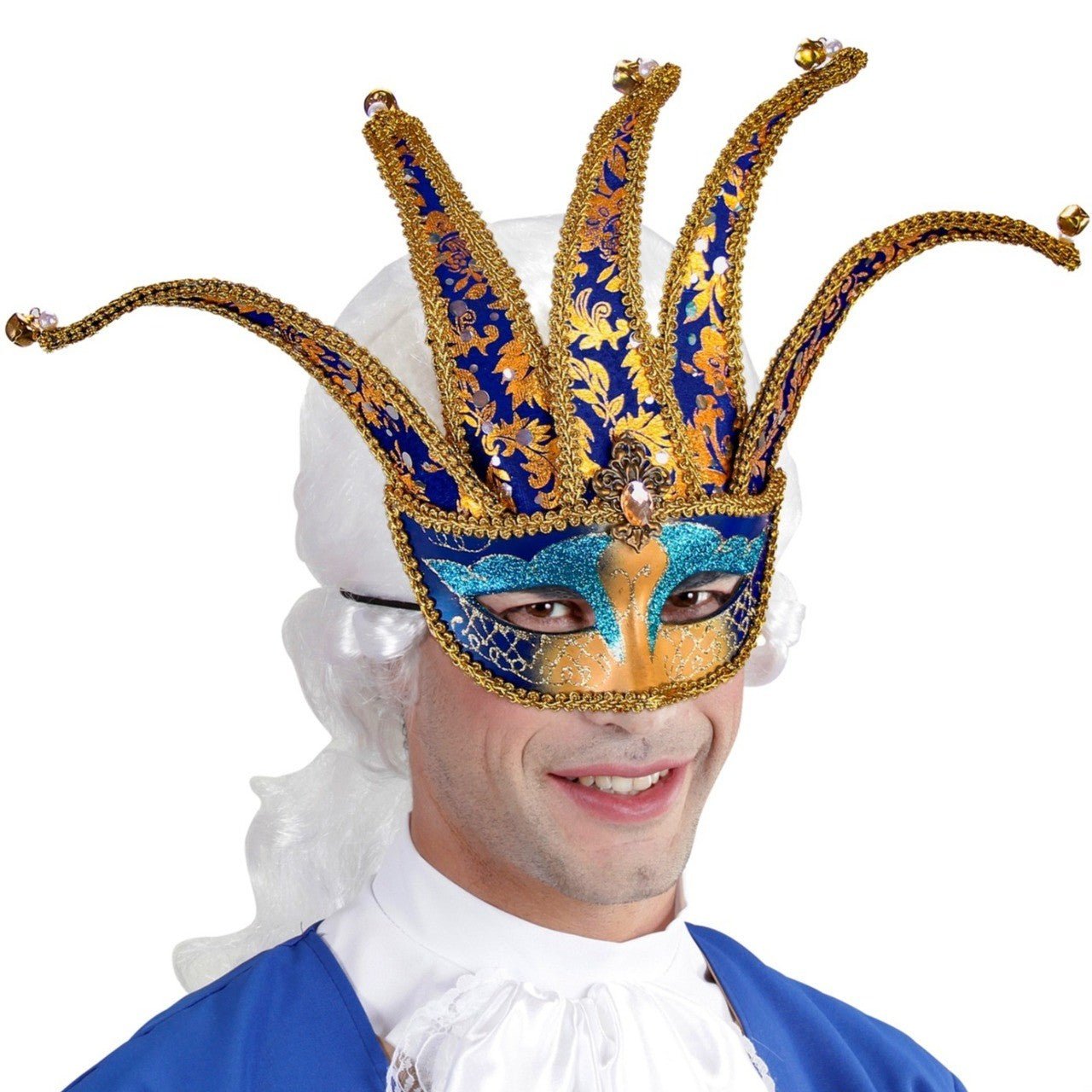Masque Vénitien Arlequin Bleu pour le Carnaval, fêtes époque et les fêtes vénitiennes. Des accessoires pour faire un voyage dans le temps. Profitez des soirées déguisée avec vos amis et faites partie de l'histoire. Les meilleurs prix avec livraison en 24/48 heures.