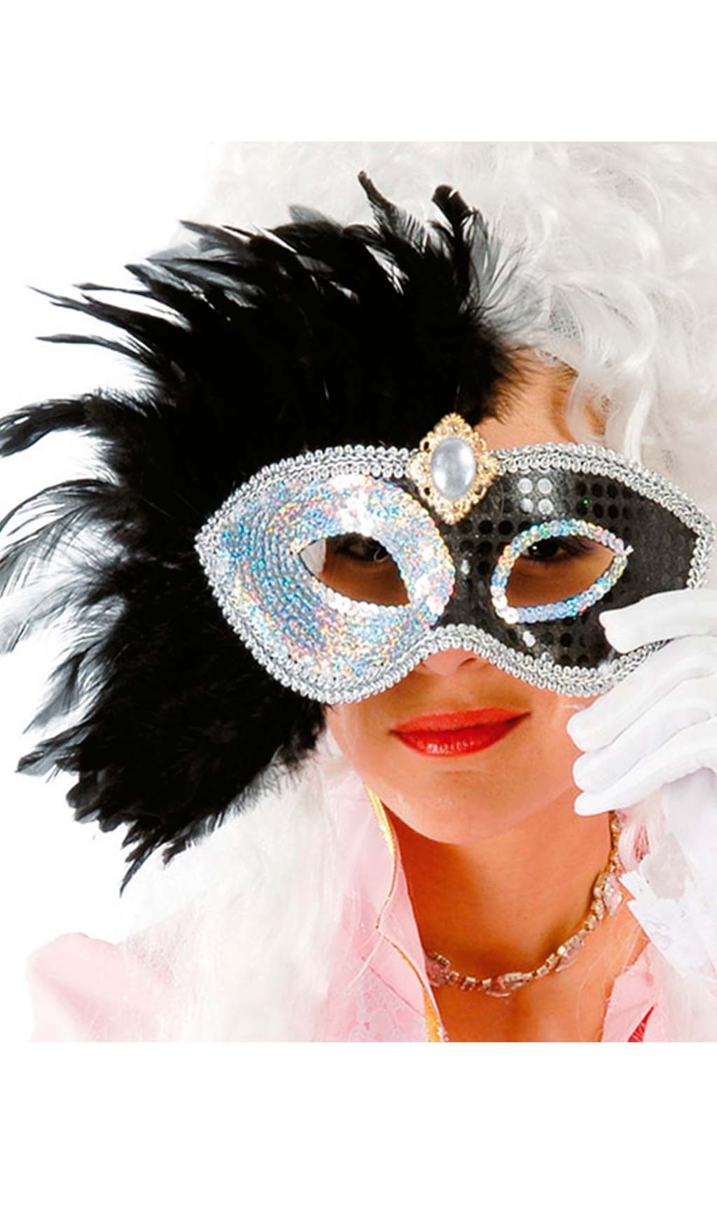 La nuit du Carnaval est magique et mystérieuse et vous ferez parti d'elle avec ce Loup Argenté et Noir decoré avec des plumes. Ne manquez pas les Bals d'Halloween ou des Fêtes à Thème.