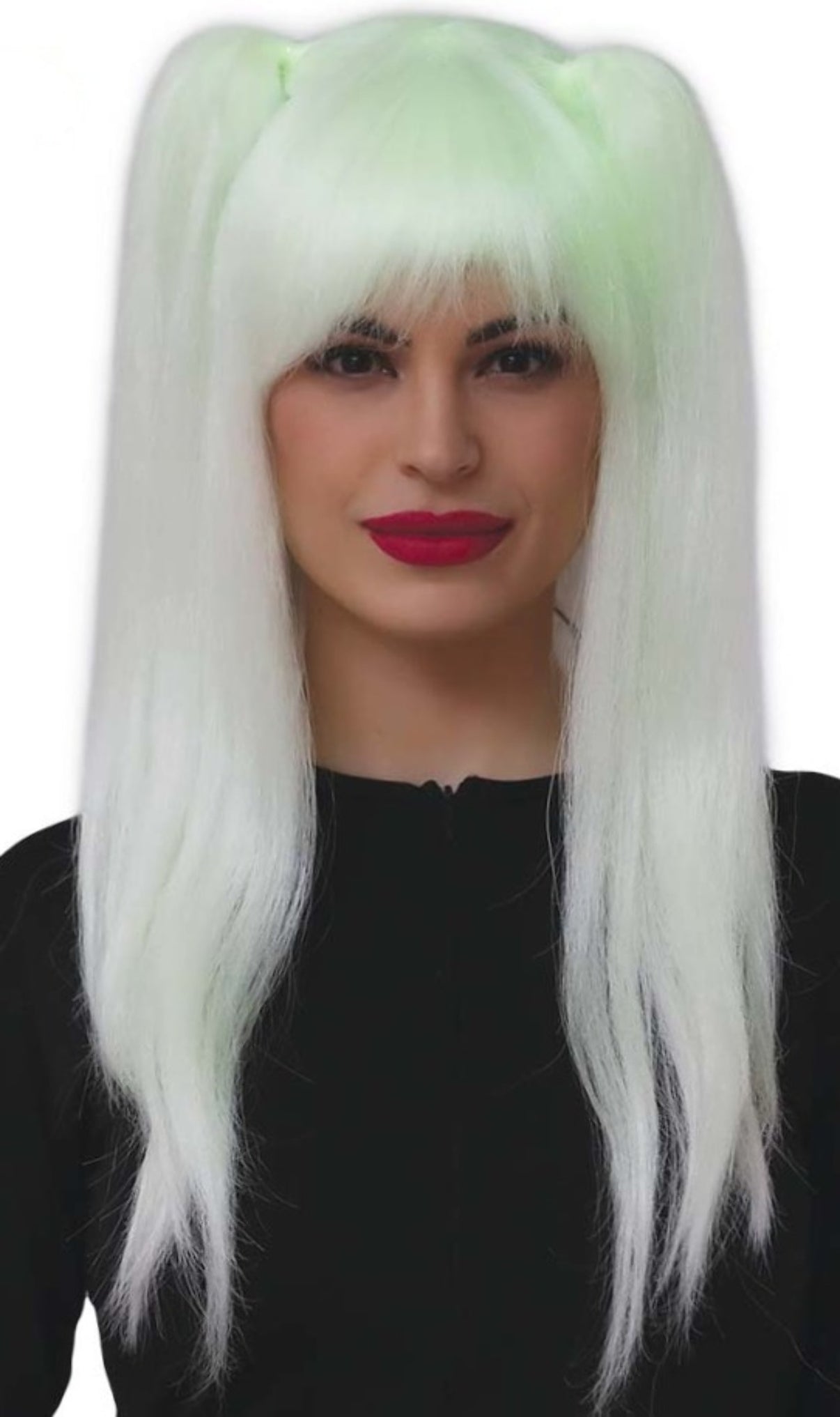 Perruque Blanche Fluorescente avec Couettes pour le carnaval. Complétez tous vos déguisements et costumes avec des accessoires pour une meilleur caratérisation. Votre personnage sera plus réaliste, vous ferez fureur lors des fêtes à thème et soirées déguisées. Laissez voler votre imagination et entrez dans la peau du personnage de votre choix