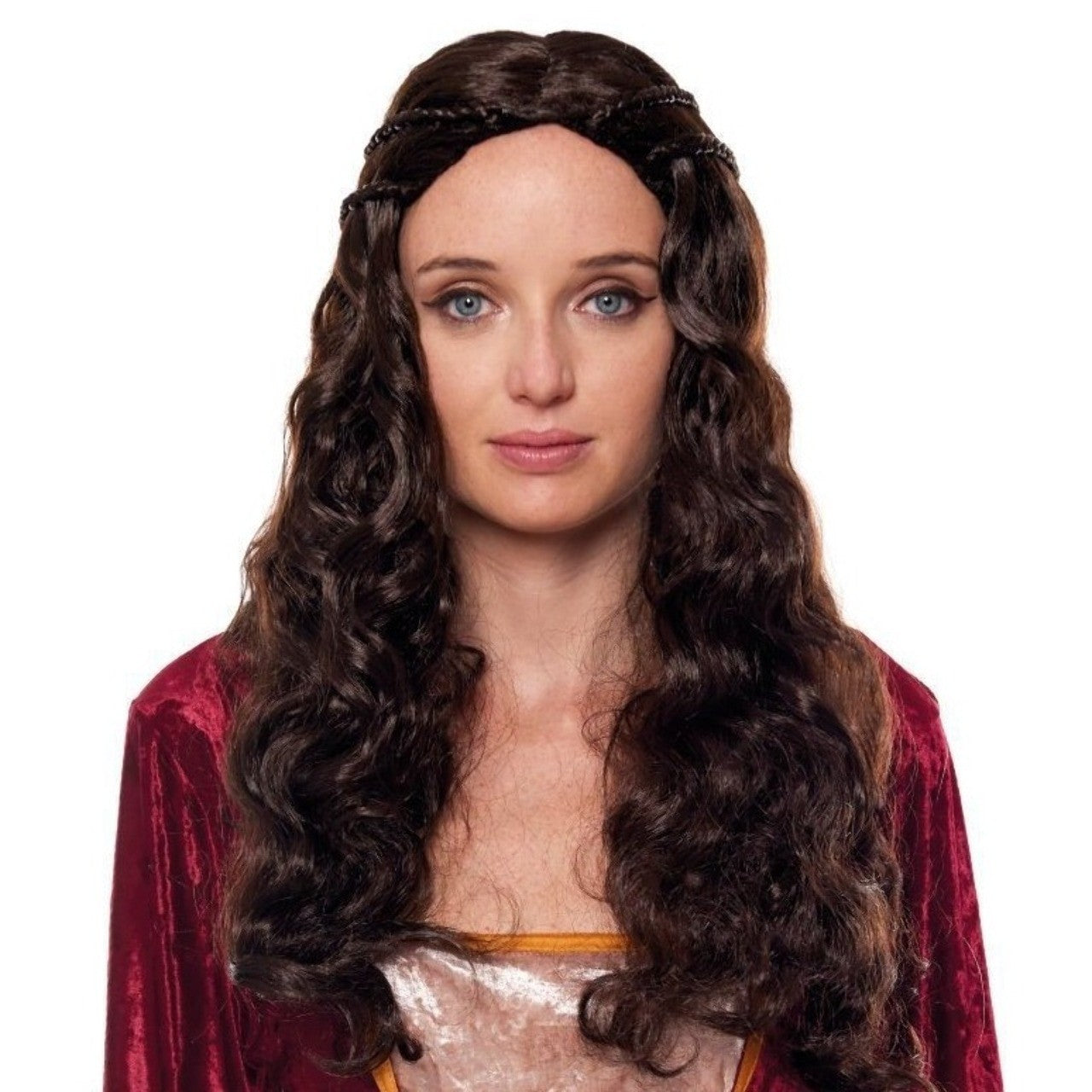 Perruque Brune Médiévale pour les fêtes médiévales et les fêtes historiques. Des accessoires pour voyager au Moyen Âge avec vos déguisements médiévaux. Profitez des soirées déguisée avec vos amis et faites partie de l'histoire. Les meilleurs prix avec livriason en 24/48 heures.