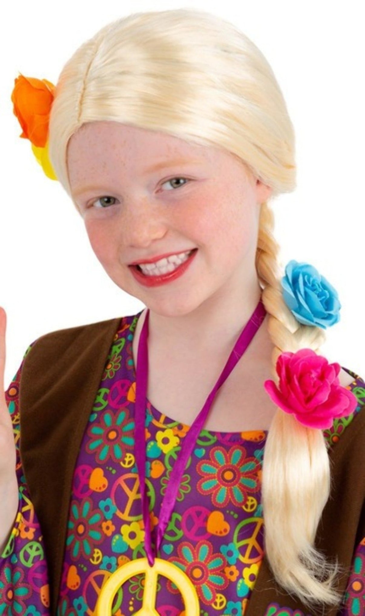Perruque Hippie avec Tresse pour enfant pour le carnaval et votre soirée hippie. Découvrez les déguisements hippies les plus colorés et amusants. Accompagnez-les d'accessoires au style rétro pour profiter au maximum de vos soirées.