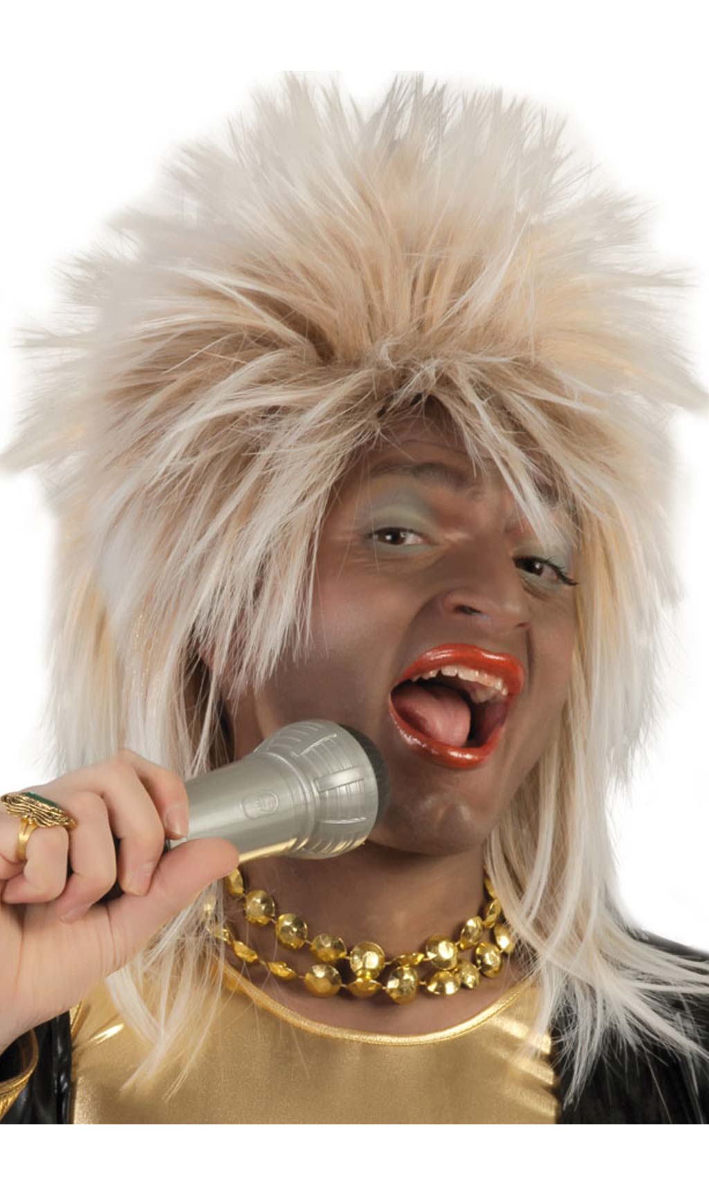En mettant cette Perruque Tina Turner vous sentirez comme le rythme du Rock envahie votre corps et vos jambes bougent toutes seules. Mettez votre robe courte, prenez le micro et commençer avec What's love got to do with it pour reussir le succés dans les Fêtes à Thèmes, Carnaval ou Enterrements de vie de célibataire.
