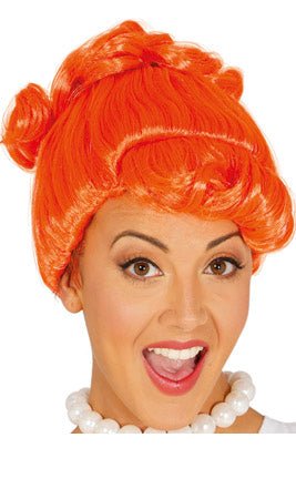 La Perruque Wilma Orange est un accessoire pour ressembler à un membre des Pierrafeu au Carnaval et Fêtes Enfants. Mettez en valeur cette coiffure comme dans le dessin animé et vous deviendrez une femme des cavernes sexy et coquette.