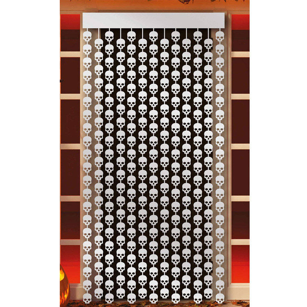 Rideau de Crânes sinistres pour vos soirées à thème. Nous disposons d'un large catalogue des décoration pour toute célébration: décoration à suspendre, guirlande, décoration de table, conffetis, photobooth, etc... Décoration pour anniversaires, Halloween et soirées à thème.
