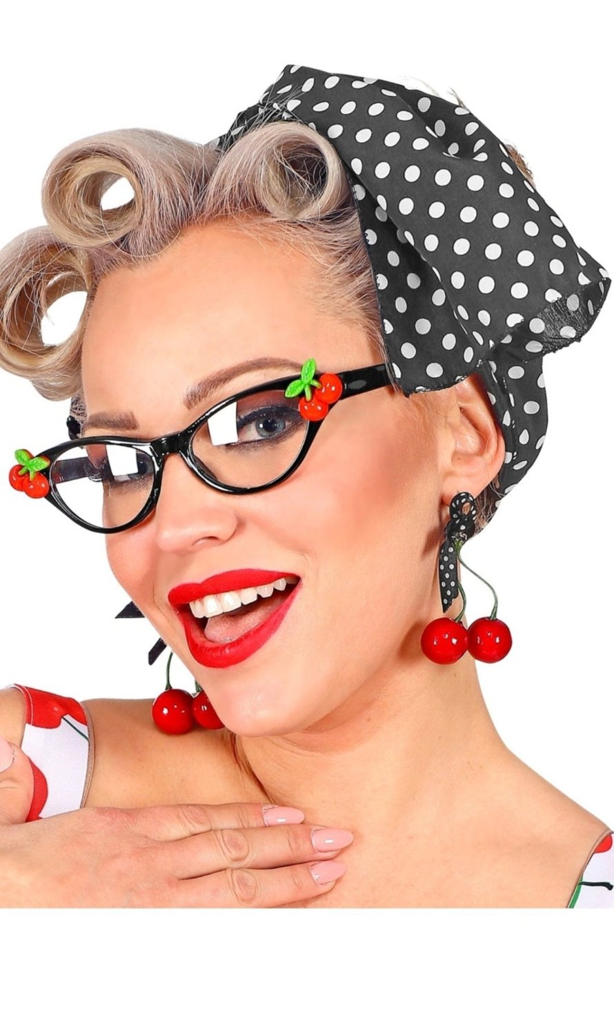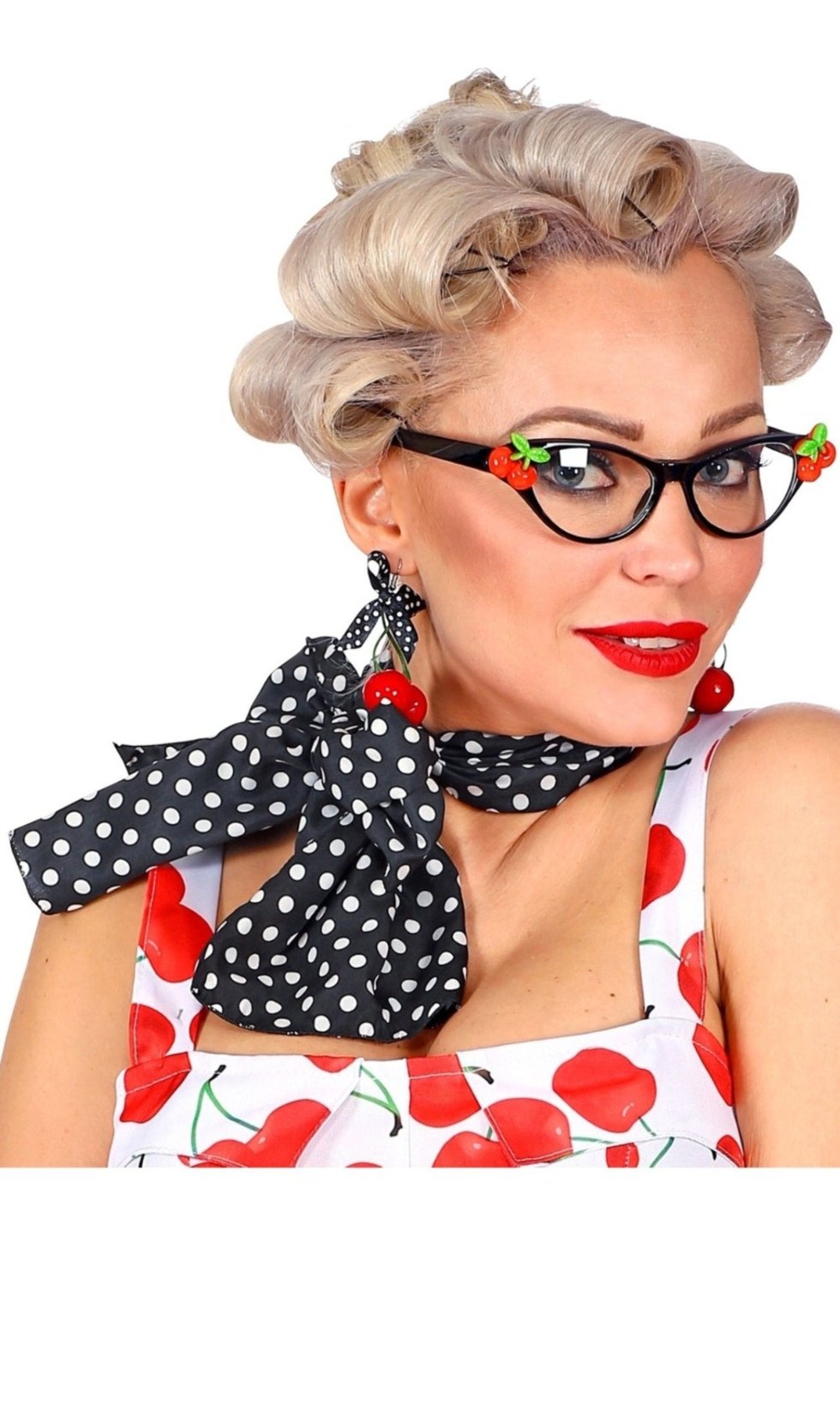 Kit Années 50 Cerises pour Carnaval et soirées à thème Rock et disco. Découvrez les accessoires pour votre déguisement disco et rock de années 80 et 50. Accessoires rétro pour danser les chansons le plus écoutées de la décennie.