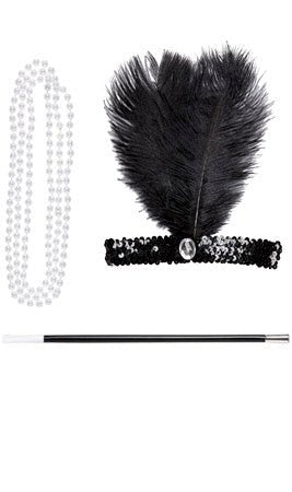 Kit Charleston Noir pour le Carnaval et carnaval et soirée gatsby années 20. Choisissez les accessoires parfaits pour votre déguisement de Charleston, ou pour être un gangster. Retourner à les années folles l'ère du Jazz et du Swing où l'élégance régnait.