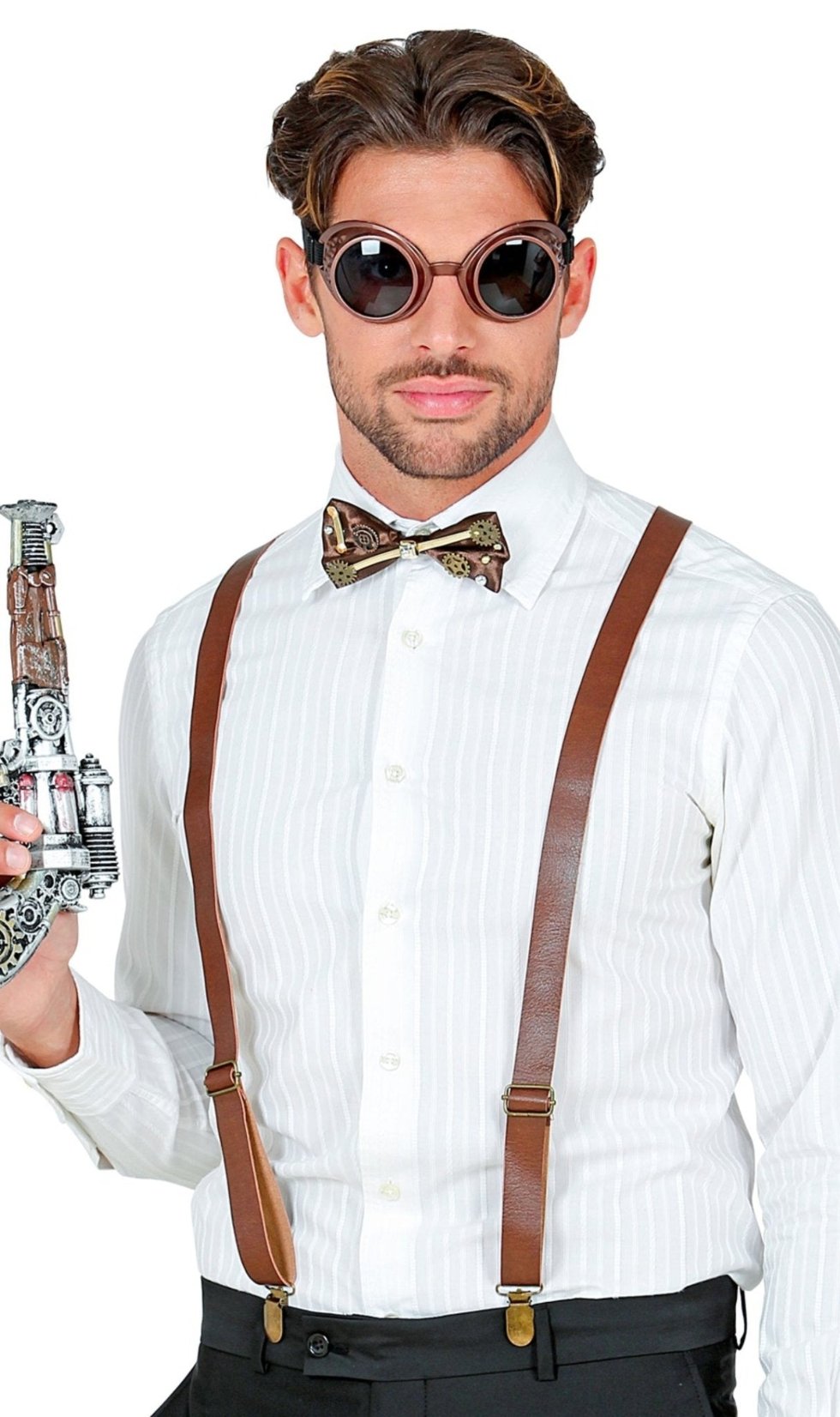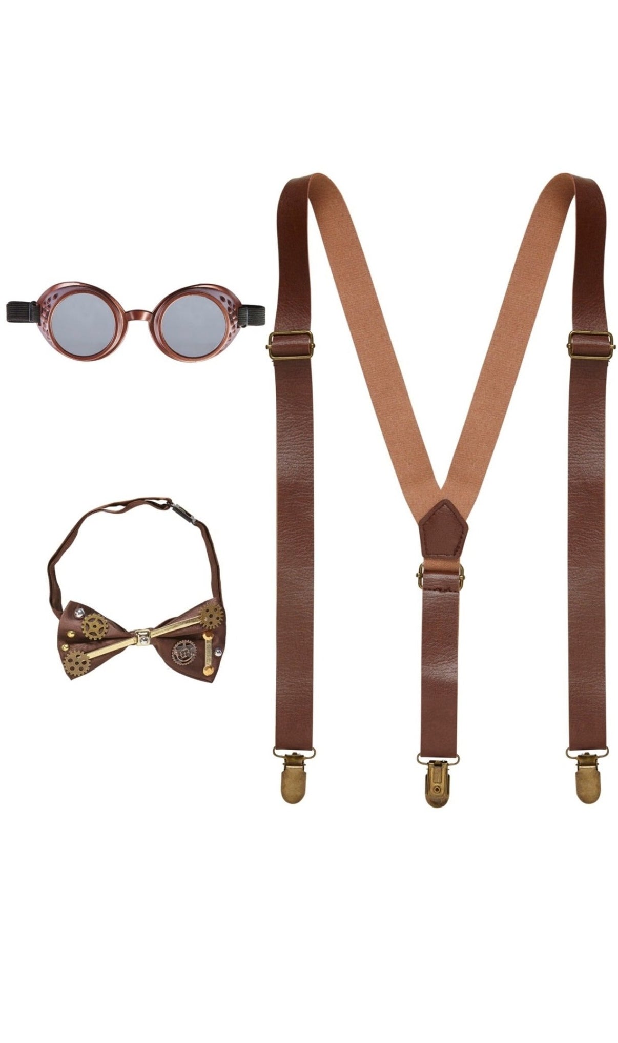 Kit Steampunk Marron pour Carnaval et soirée à thème. Avec les accessoires vous pourrez personnaliser votre déguisement et être le plus original dans vos soirées déguisée. Découvrez notre catalogue et passez votre commande dès maintenant.