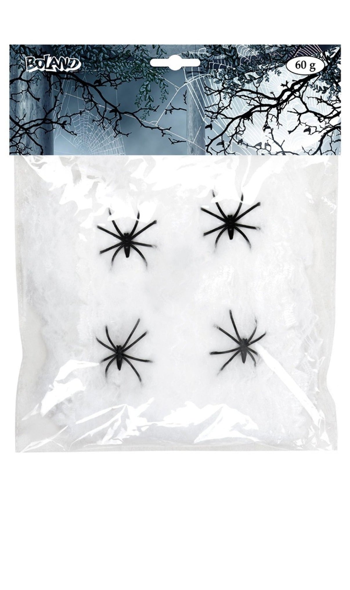 Toile d'Araignée Blanche 60gr avec 4 Araignées