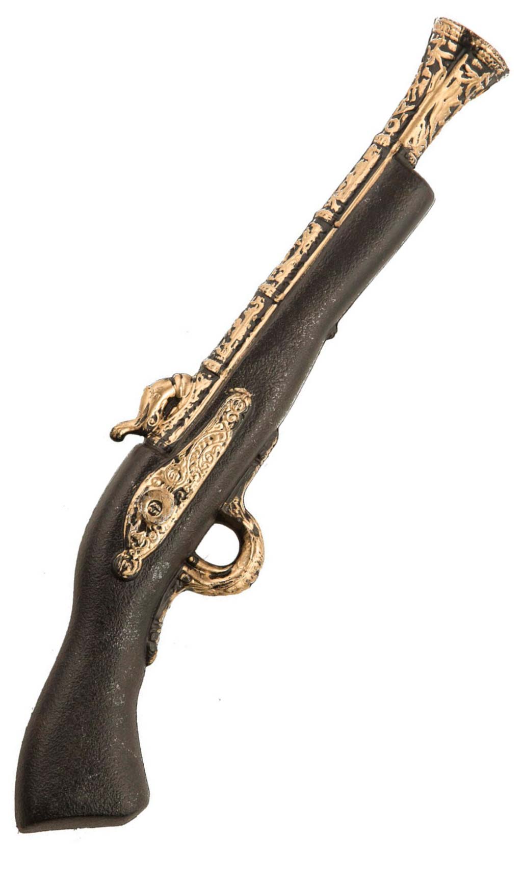 Tromblon Court Doré pour le carnaval et les fêtes à thème. Cherchez les trésors perdus et naviguez les mers des Caraïbes en vous transformant en pirate ou corsaire.